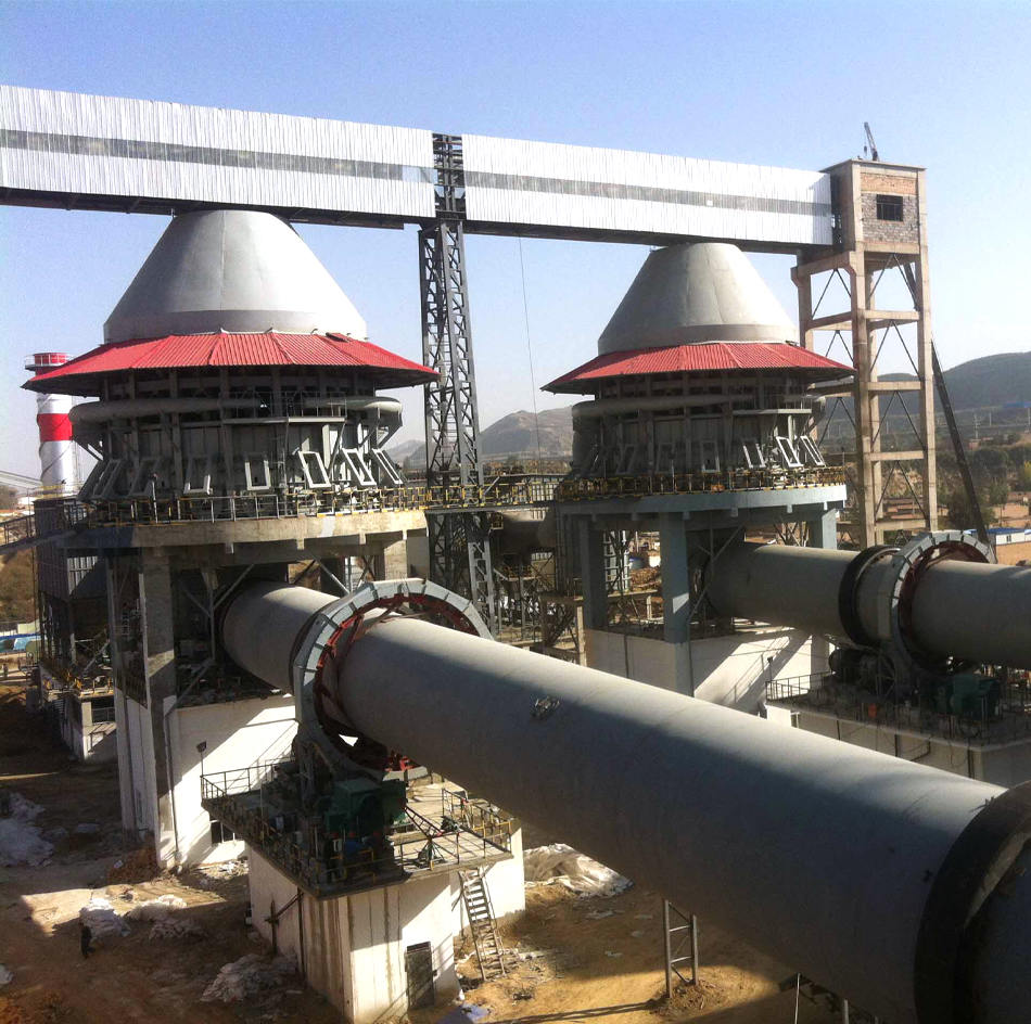 物料在筒體內受熱均勻、充分、熱傳遞迅速,另一方面物料和氣體逆向流動,熱量得到充分利用,廢氣通過窯尾的預熱器,熱量被二次利用與烘干物料,成品石灰帶出的熱量經窯頭下的冷卻機轉換成熱氣流又轉回窯內,大大提高了窯的熱效率。