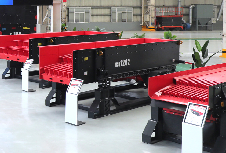 HSF系列重型棒條振動給料機,按照重型工況設計,適用于石料、建材和冶金礦山行業,為大中型初級破碎設備提供給料。結構緊湊,抗沖擊力強,外置偏心塊設計使得給料機振幅調整方便快捷,獨立的耐磨棒條使得棒條間隙可隨意調整,很大程度優化進入破碎機的物料粒度,提高破碎機產能,降低能耗。